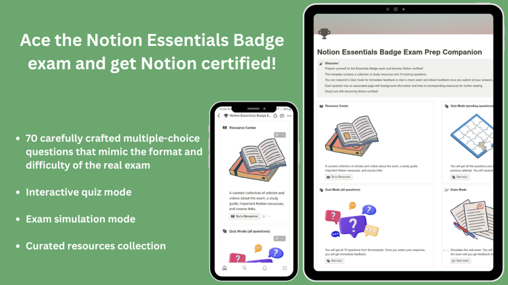 Introducing the Notion Essentials Badge Exam Prep Companion: prepare yourself effectively for the exam and increase your chances of passing and getting certified.